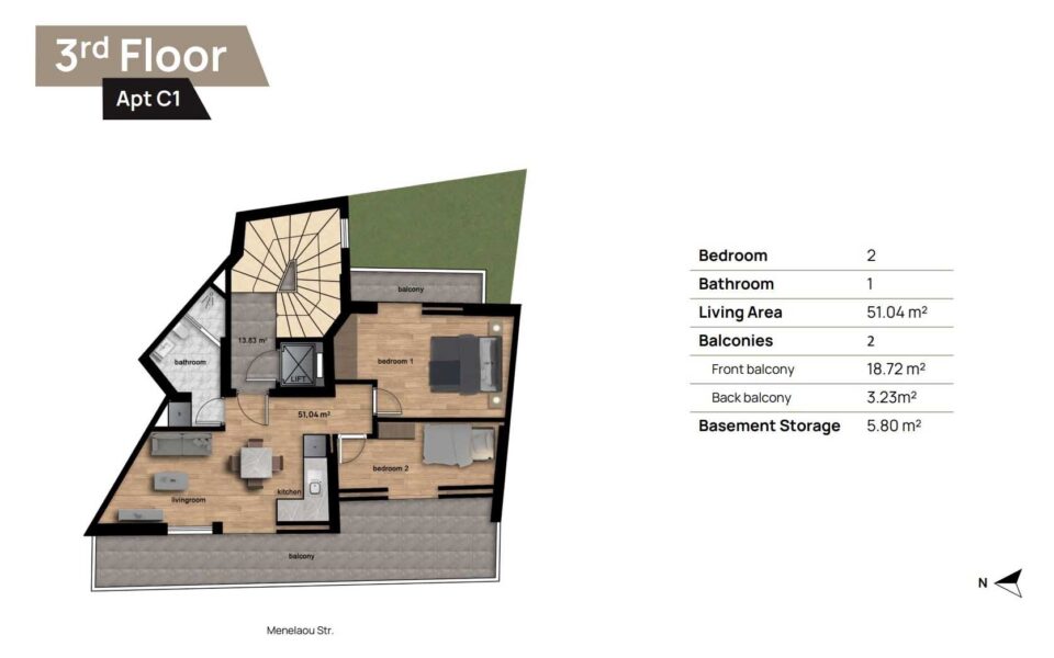 طبقه ۳ – ۵۱ متر مربع – ۲۲ متر مربع. بالکن – ۳۰۰.۰۰۰ یورو